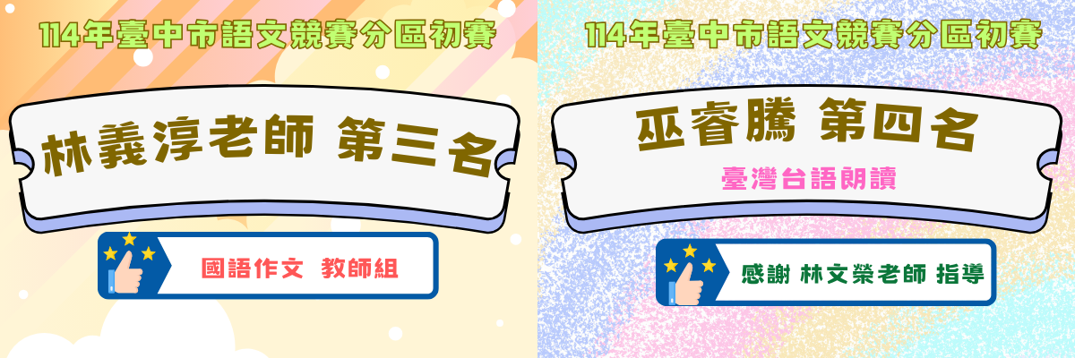 恭喜六年三班李祥知參加114學年度臺中市英語說故事比賽,榮獲甲組第四名,感謝謝家琦老師指導。